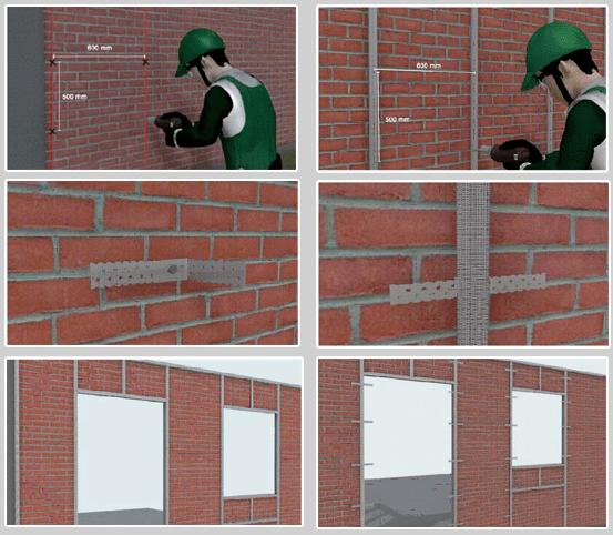 3.排放和固定龍骨,龍骨可用50#輕鋼龍骨也可用2.5*3厘米木方。將龍骨豎方向按60厘米間距固定在墻面上,固定件可為鋼釘或膨脹螺絲。如用木龍骨要求為防腐材或經防腐液、瀝青作過防腐處理的木材;門窗四周須鋪設加強龍骨。