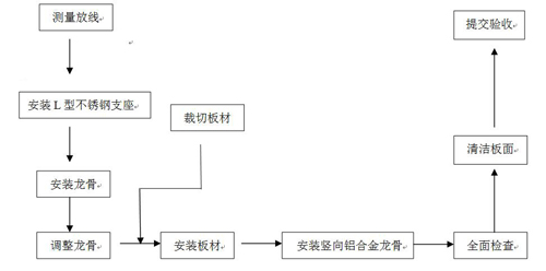 (注意:根據(jù)設(shè)計(jì)圖紙的相關(guān)要求及施工現(xiàn)場(chǎng)實(shí)際情況,先安裝出數(shù)米龍骨試驗(yàn)段,掌握規(guī)律后再進(jìn)行大片安裝)