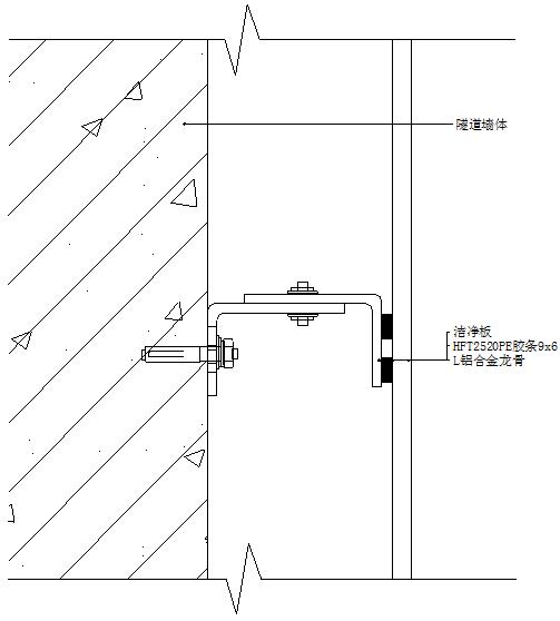 3)隧道防火板的安裝由下至上依次順序安裝,先將第一塊粘貼PE膠條的裝飾板嵌入底端鋁合金龍骨的槽內(nèi),板的上端由水平接縫鋁合金龍骨下槽固定,并將板壓實(shí)在龍骨上,確保龍骨與板的粘接。
